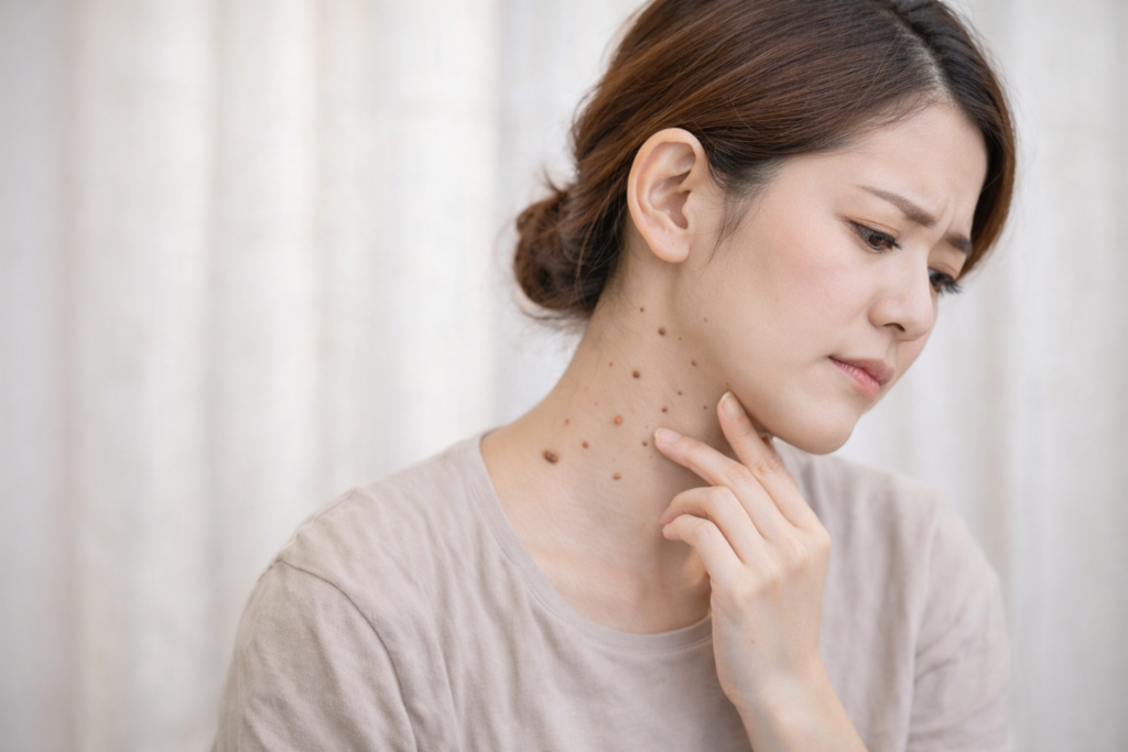 首やデコルテに気づかないうちに現れる小さな突起。見た目の変化として気になりやすいこれらの多くは、実は良性の皮膚変化です。日常の摩擦や紫外線、年齢による変化が関係しており、正しく理解することで予防や対処がしやすくなります。